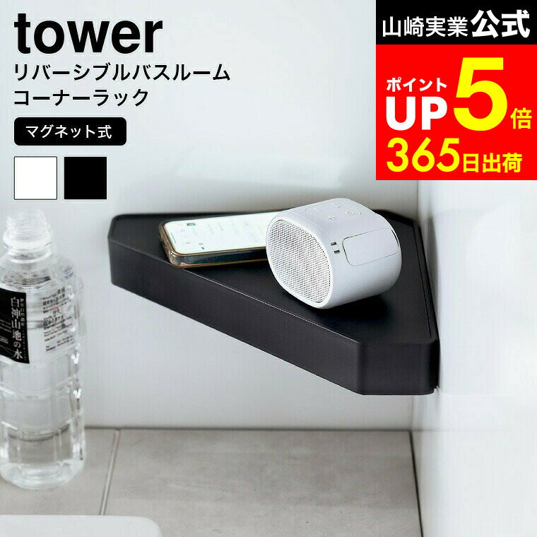 【LINEお友達で最大330円クーポン】[ リバーシブルマグネットバスルームコーナーラック タワー ] 山崎実業 公式 tower ホワイト ブラック 4045 4046 / 浴室 コーナーラック 浴室 ラック スマホ置き バスルームラック スピーカー お風呂 マグネット
