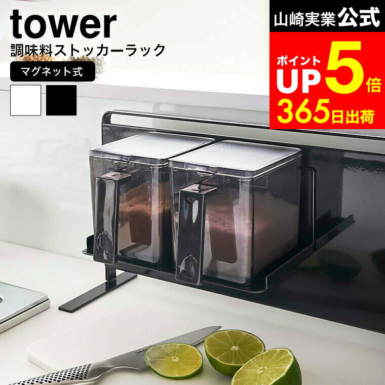 【LINEお友達で最大330円クーポン】[ マグネット調味料ストッカーラック タワー ] 山崎実業 公式 tower ホワイト/ブラック 5132 5133 キッチン マグネット 収納 調味料ラック 調味料ストッカー 調味料 収納棚 キッチン収納 台所 北欧 タワーシリーズ