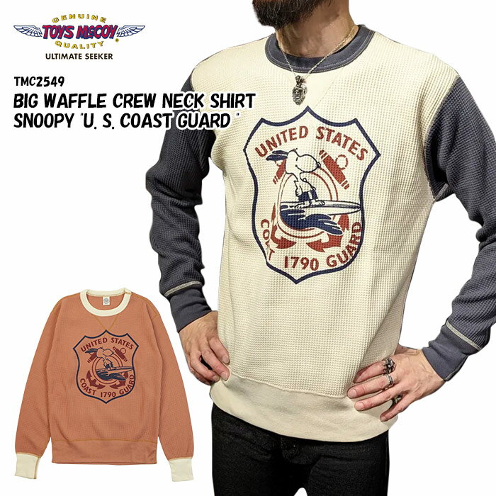 トイズマッコイ TOYS McCOY ビッグワッフル クルーネック スヌーピー "USコーストガード" BIG WAFFLE CREW NECK SHIRT SNOOPY "U. S. COAST GUARD " TMC2549 メンズ トップス ロンT 長袖 プリント 日本製 made in japan 2025新作 綿100% S M L X ナチュラル キャロット