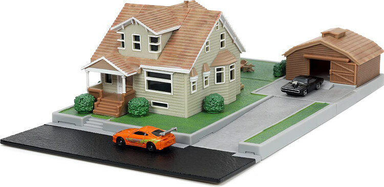 ジャダトイズ ジオラマセット ドムの家 トヨタ スープラ ダッジ チャージャー R/T ドミニク・トレット ガレージ付 映画 ワイルド・スピード ジオラマセット Jadatoys diorama set Toyota Supra Dodge Charger R/T Dom Toretto's a house with garage Fast & Furious