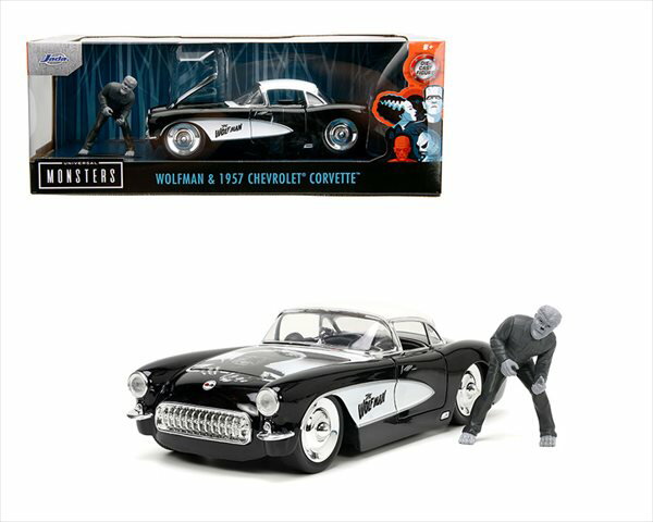 ミニカー 1/24 JadaTOYS☆ウルフマン フィギュア付き 1957 コルベット 黒/白 Chevrolet Corvette With Wolfman 【予約商品】