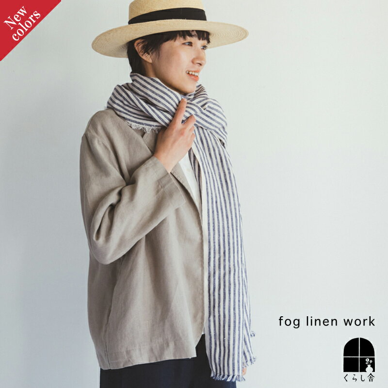 在庫限り ラスト 1点 fog linen work スカーフ トゥズ フリンジスカーフ ジャスパー フォグリネンワーク リネン ストール 麻 大判 紫外線対策 冷房対策 ストライプ ブルー マルチクロス ファッション 小物 母の日 プレゼント ポイント・クーポン対象外