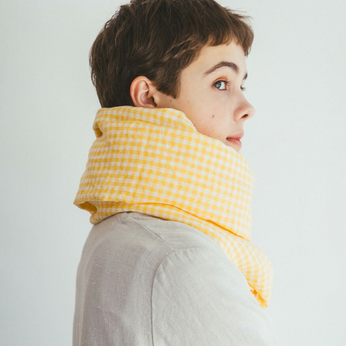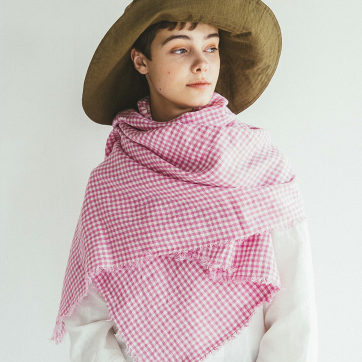 fog linen work トゥズ フリンジスカーフ ケイリー 普通地のリネン生地をたっぷりと使って大判スカーフに仕立てました。 程よく厚みがある生地感なので、肌寒いときは防寒に、 また日射し避けや冷房対策にも役立ち、長いシーズンで活躍します。 巻き方はいろいろ。首にくるくるっと巻いたり、 大きさを生かしてショール代わりに使うのもおすすめです。 1辺は生地のミミを生かして、残りの 3 辺がフリンジになっています。 首に巻かないときは、籠バッグの中身が見えないように上にかぶせたり、マルチクロスとしても。 大判なのでソファにかけたり、旅行に持って行って、時には荷物をくるんだりしてもいいですね。 いろいろに活用できるリネン生地で仕立てたストールは、ギフトにもおすすめ。 どの年代の方にも喜んでいただけるアイテムです。 Color ■ケイリー --イエローのギンガムチェック (写真はプレイスマットの画像です) Color Lineup ケイリー ロビン ジャスパー ハーパー 商品詳細 3辺はフリンジ、1辺は生地のミミを生かした表情豊かなスカーフ。 fogのスカーフの中では1番大きいサイズです。 幅が広めなので、膝掛けにしたり、テーブルランナーにしたり、マルチクロスとして使えます。 サイズW 73 X L 168 cm 素材Linen 100% 普通地 原産国リトアニア 備考※洗濯後に縮みが生じる可能性のある商品は、洗剤を使って水通しを行っております。 そのため、リトアニアの洗剤の香りが残っている場合がございますが、数回のお洗濯で落とすことができます。あらかじめご了承くださいますようお願い申し上げます。
