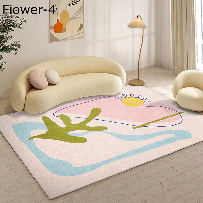 長方形ラグ カーペット 花柄 四角 リビングルーム 居間 短い毛足 チェアマット リビングマット 春夏秋冬 柔軟性 静電気防止 防カビ 防ダニ INS風 北欧風 少女風 ベッドサイド リビング テーブルの下 ルーム
