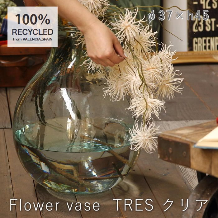 【あす楽】 花瓶 【 VALENCIA リサイクルガラスベースフラワーベース TRES クリア VGGN1030 スパイス 】 花びん フラワーベース ガラス 北欧 おしゃれ 大きい インテリア 花器 大型 リビング テーパード グリーン 枝物 丸 スペイン 丸い 枝もの シンプル 大きめ 口細 ドライ