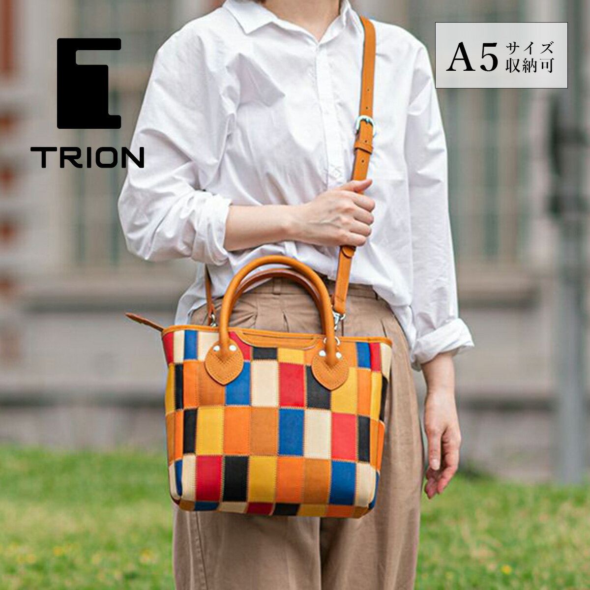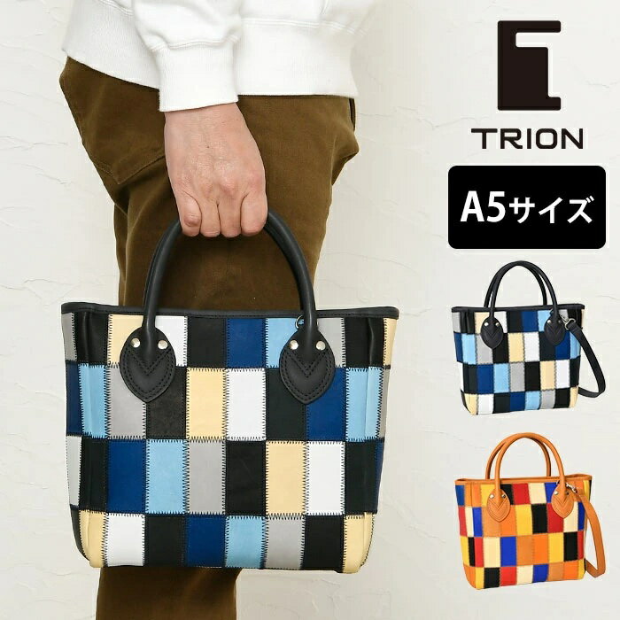 TRION トライオン 本革 DPC252SM メンズ トートバッグ A5サイズ対応 パッチワーク マルチカラー ファスナー開閉 カジュアルバッグ 鞄 レディース メンズ 牛革 ショルダーバッグ