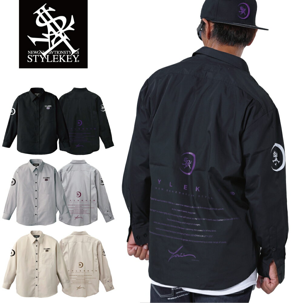 STYLEKEY スタイルキー 長袖シャツ TSUKUYOMI L/S COLOR SHIRT (SK24FW-BL01) ブランド ヒストリー 文字 テキスト メッセージ 月 ロゴ メンズ ファッション ヒップホップ B系 ストリート ブラウス シャツジャケ ドレスシャツ バックプリント 袖プリント