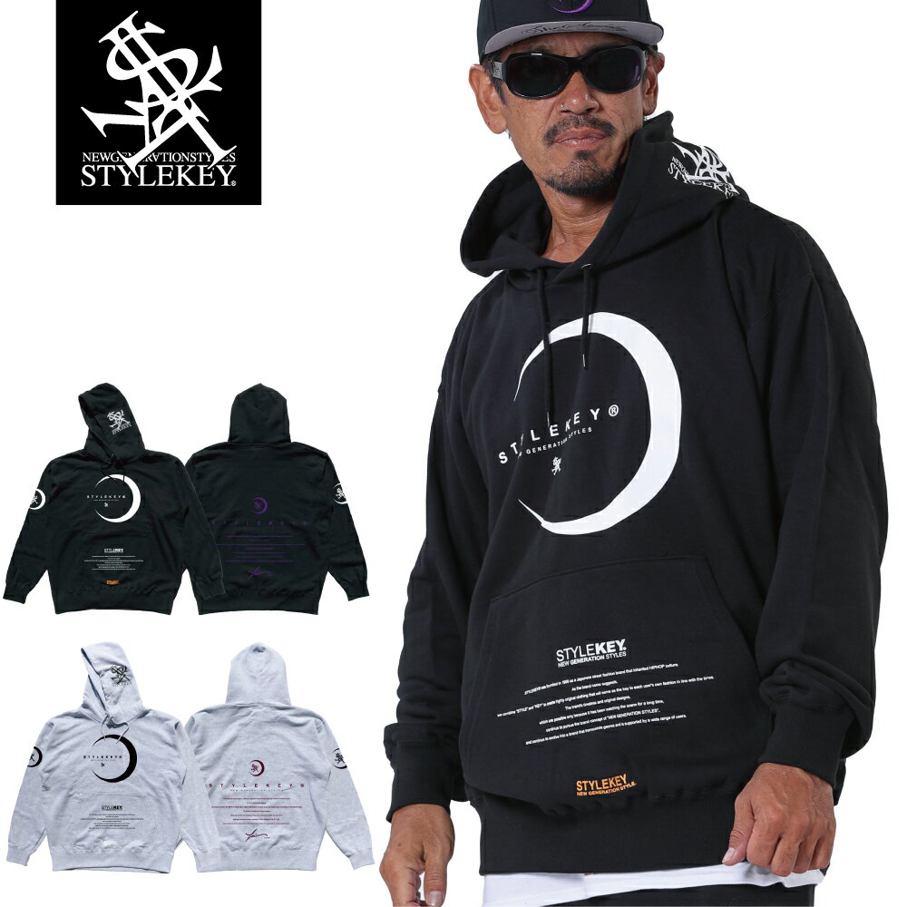 STYLEKEY(スタイルキー) スウェットパーカー TSUKUYOMI HOOD SWEAT(SK24FW-SWH02) 三日月 ロゴ マーク ブランド ヒストリー コンセプト ワンポイント バックプリント フード プルオーバー メンズ レディース ファッション ストリート系 ヒップホップ B系