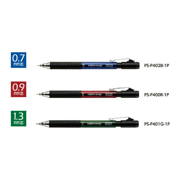 メール便(ポスト投函)は16個まで ※ご希望の方は配送方法でご設定下さい。 ●外寸法(軸径・長さ):φ10.5・143 ●芯径:0.9mm ●ブリスター台紙寸法/ヨコ52×タテ200 ●パイプスライド ●材質/軸:PC、グリップ:エラストマー、クリップ:スチール メーカー希望小売価格はメーカーカタログに基づいて掲載しています●鉛筆のようになめらかに書けて折れにくい鉛筆シャープに上質なデザインのTypeMが登場しました! ●太芯なので折れにくくなっています。 ●しっかり留まる丈夫な金属クリップ付きです。ポケットやノートなどに挟んで持ち歩きやすいです。 ●指にフィットし、すべりにくく握りやすいラバーグリップです。グリップ先端部はしっかり握れる六角形。グリップ後ろ側はゆったり持てる円形。 ●ペン先が細くなっているので、筆記時に文字が見やすいスリム形状です。金属製なので、安定してしっかり書くことができます。また、先端のパイプは安心の収納式です。 ●汚れが目立ちにくい黒消しゴム付きです。便利な繰り出し式です。 <関連商品> PS-P402B-1P (TypeM 0.7mm 青) PS-P401G-1P (TypeM 1.3mm 緑) PS-P502B-1P (TypeMx 0.7mm 青) PS-P500R-1P (TypeMx 0.9mm 赤) PS-P501G-1P (TypeMx 1.3mm 緑) ケシ-P201 (替消しゴム)