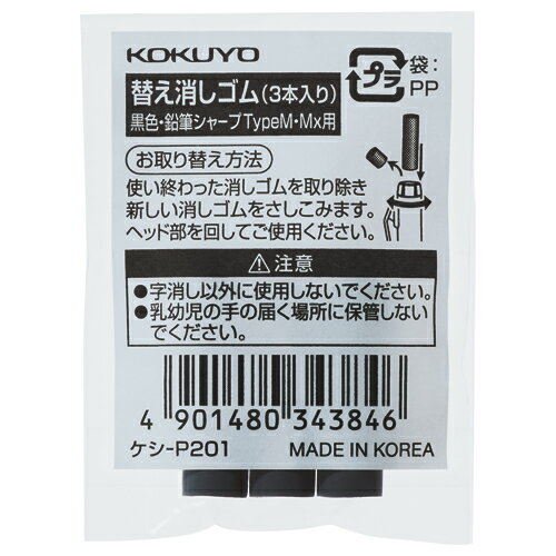 ★ポイント最大16倍★【在庫品は翌営業日発送】-ato6475-5588 鉛筆シャープTypeM用替え消しゴム (黒3本) 1ケ 64755588 コクヨ ケシ-P201 -【@オフィス】