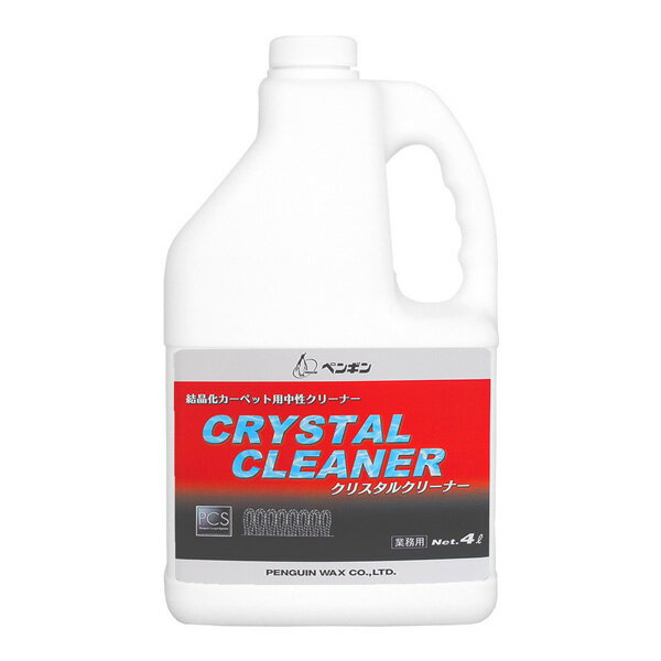 商品名まとめ買い ペンギンワックス クリスタルクリーナー4L製品型番006591製造販売元ペンギンワックス内容量4LJAN4976560065918標準希釈倍率10倍▼ 同梱について ▼単品配送です同梱不可 (単品配送品は他商品との同梱ができません) ▼ 代金引換 ▼代金引換決済で購入できます▼ 時間帯指定 ▼可(配達の都合上、希望通りに添えない場合があります)▼ この商品の返品について ▼・こちらの商品は【返品不可】な商品です。出荷後お客様のご都合による返品はお受けできません ・化学製品、取寄せ商品、受注生産商品は性質上、お受けできません ・返品についてはお客様サポート「返品・交換・保証について」をご確認頂き、ご注文にお進みください▼ 出荷・配達について ▼ ・業務用の出荷便の為、日曜・祝日配達はお受けできない事があります ・大型商品や大量個口の場合、業務用配送便でのお届けとなり、マンション上階やビル施設内への配達ができず、軒先渡し・車上渡しとなる場合がございます。その場合は受取人様にてお荷物のお受け取りおよび移動をお願い致します。 ・同時に注文する商品によっては、別々の配達便になる場合があります ・環境を配慮し、出荷時の梱包は簡易もしくは無包装となります クリスタルワンシステム対応のクリーナー。洗浄効果が高く、洗浄後約1時間と乾燥が速い。 優れた防汚効果を発揮し洗浄後には結晶化するので汚水の発生がなく簡単に作業できます。 中性タイプで環境ホルモンも含まず素材や人にも優しい。