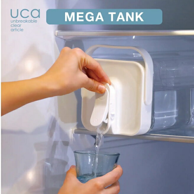 シービージャパン(CB JAPAN)uca 冷蔵庫に入れたまま注げるジャグ MEGA TANK 樹脂製ジャグ ハンドル付き 冷水筒 水 夏 ロック機能付き BBQ アウトドア キャンプ 横持ちでも注ぎやすい フィルター付き 実容量3.5L 縦/横2WAY ホワイト グレー サイズ約W140×D130×H342mm