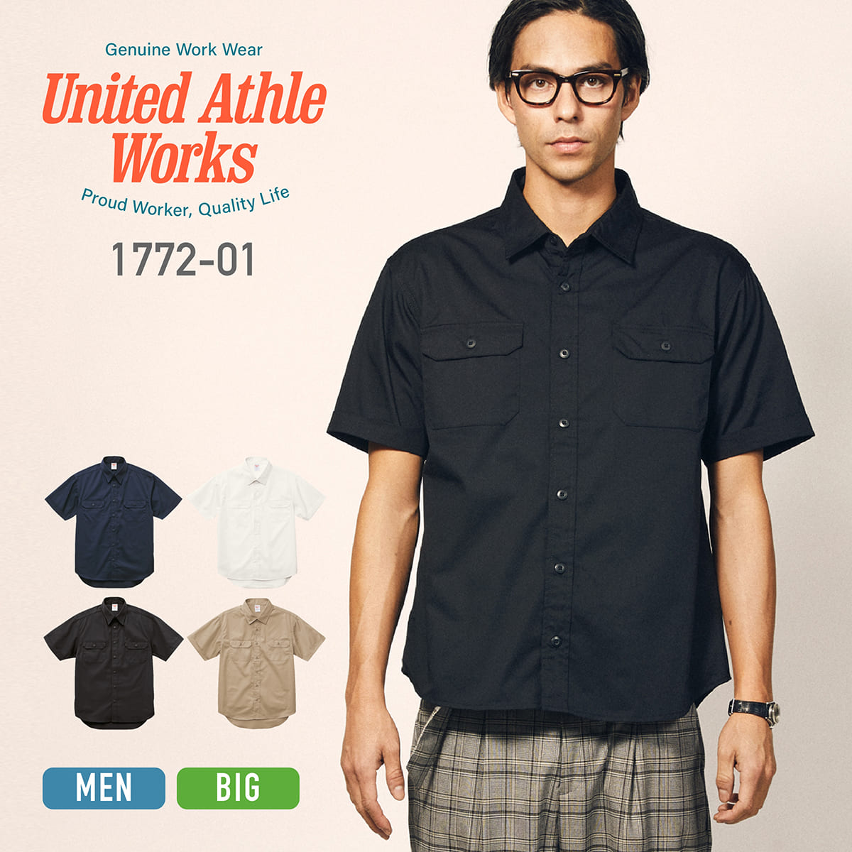 シャツ メンズ 無地 半袖 United Athle ユナイテッドアスレ T/C ワークシャツ 1772-01 男女兼用 ユニセックス 大きいサイズ ペン差し付き カジュアル 普段着 街着 重ね着 ポケット付き スケーター シンプル ユニフォーム 制服 仕事 形状安定 XS S M L XL XXL