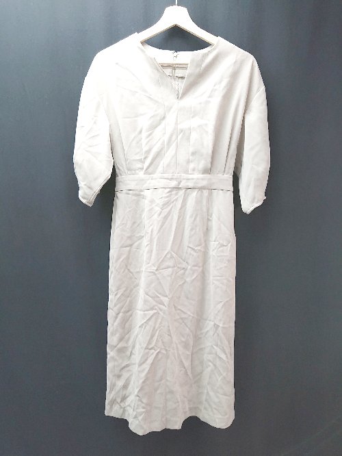 ◇ nano UNIVERS バックファスナー バックスリット 透け感なし 半袖 ロング ワンピース サイズ36 グレージュ レディース E 【中古】