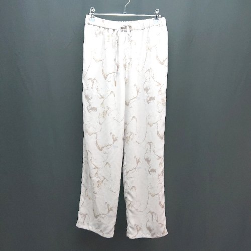 ◇ nano univers ハイウエスト ウエストゴム 腰紐付き 総柄 ストレートパンツ サイズFREE ライトグレー系 レディース E 【中古】