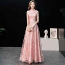 チャイナドレス レディース ピンク系 フォーマル イブニングドレス ロング丈/ミディアム丈 立襟 Aライン スパンデックス パーティードレス 宴会 結婚式