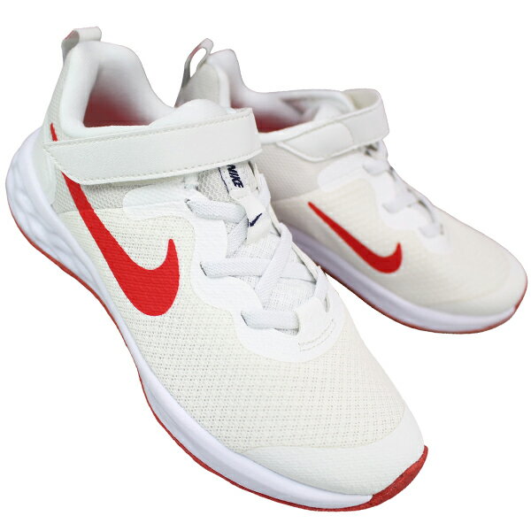 【エントリーでポイント5倍⇒11/27(木)1:59迄】 ナイキ レボリューション6 スニーカー DD1095 102 ホワイト/レッド 17cm〜22cm キッズ ジュニア マジックテープスニーカー カジュアルシューズ 子供靴 運動靴 紐なし靴 面ファスナー REVOLUTION 6 NN PSV nike ナイキDD1095