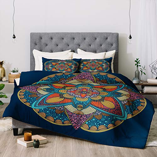 【中古】【未使用・未開封品】Deny Designs Valentina Ramos 牡丹掛け布団セット 枕カバー付き ツインサイズ ブルー
