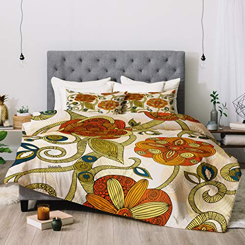 【中古】【未使用・未開封品】Deny Designs Valentina Ramos オレンジフラワー 掛け布団セット 枕カバー付き フル/クイーン