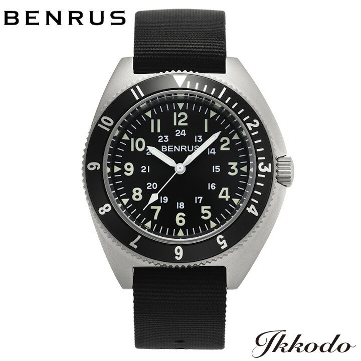 モデル名 TYPE-II SILVER 番号 TYPE-II SV ムーブメント クォーツ(日本製) ケース素材 ステンレススチール ケースサイズ 横: 42.0mm 厚さ: 16.0mm バンド素材 ナイロン ラグ幅 19.0mm 防水性 10気圧防水 重量 76.0g 商品説明 TYPE-II SILVERは1970年代、米軍用にTYPE-Iとともに開発され、現場の兵士やオペレーターにより適した12/24時間のダイヤルを備えています。非常に堅牢な時計として、製造された由緒あるミリタリーウォッチ。 当時の資料(MIL-W-50717)を元に、できるだけ忠実に復刻。シルバーケースは、オリジナルの姿を手に取ることができます。 保証 1年間メーカー保証 価格 33,000円(税込)BENRUSは1921年にベンジャミンラズラスと彼の2人の兄弟によってニューヨークで設立され、彼の名前の最初の音節と家系の名前の最後の音節からその名前が付けられました。3人の若者は5,000ドルの資金を用意し、優れたスイス製ムーブメントを輸入、アメリカ国内で組み立てする生産体制をとっていました。 飛行家チャールズ・リンドバーグ氏、アメリカ野球の神様ベーブ・ルース選手を起用したマーケティングでその名が知られていくことになります。1930年代はドレスウォッチ、1960年代はインナーベゼルを装着した防水時計ウルトラディープを販売し人気を集めました。