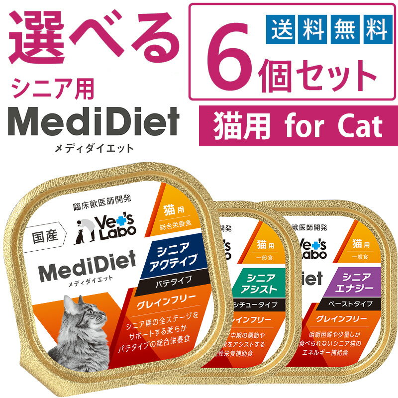 公式【送料無料】 メディダイエット シニア 猫用 選べる6個セット 【Vet's Labo】【メール便配送】 総合栄養食 ウェット フード 猫 シニア 老猫 柔らかい やわらか キャットフード 国産 グレインフリー トッピング ペット MediDiet ジャパンペットコミュニケーションズ [T/F]
