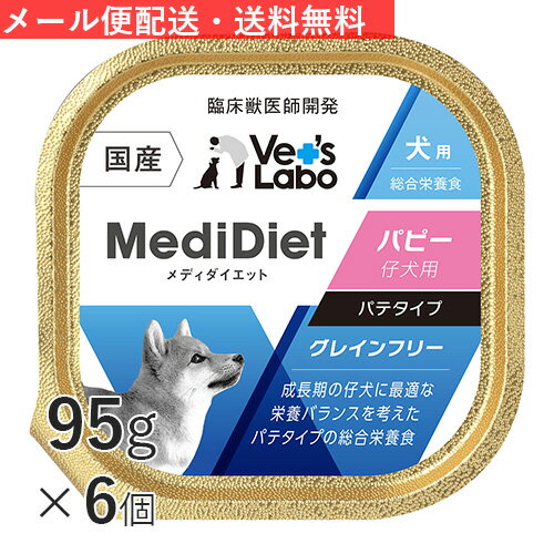 公式【送料無料】 メディダイエット 犬用 パピー 95g×6個 【Vet's Labo】【メール便配送】総合栄養食 ウェット フード 犬 やわらか ドッグフード 国産 グレインフリー ペット MediDiet ジャパンペットコミュニケーションズ
