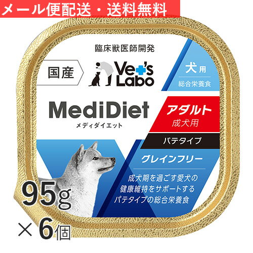 公式【送料無料】メディダイエット 犬用 アダルト 95g×6個 【Vet's Labo】【メール便配送】総合栄養食 ウェット フード 犬 やわらか ドッグフード 国産 グレインフリー ペット MediDiet ジャパンペットコミュニケーションズ