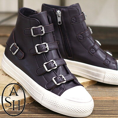 【2023年秋冬新作】【日本正規取扱店】 ASH Virgin Plum アッシュ ヴァージン パープル シルバー レザー インヒール ハイカット スニーカー 美脚