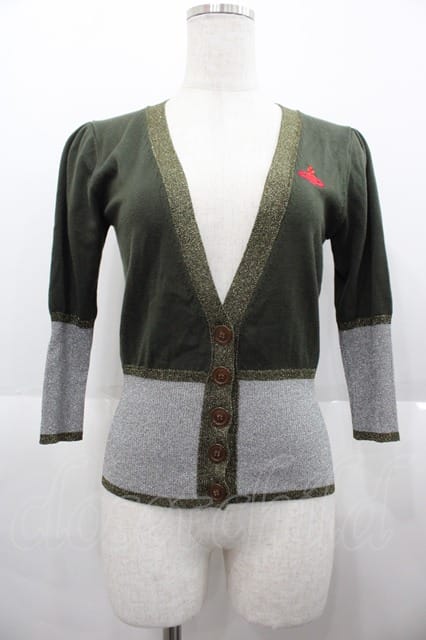 税込3980円以上購入で【送料無料】【USED】Vivienne Westwood / 単色オーブ刺繍ラメラインニットカーディガンヴィヴィアンウエストウッド ビビアン2 グリーンXシルバー 【中古】 I-25-08-30-010-to-HD-ZI