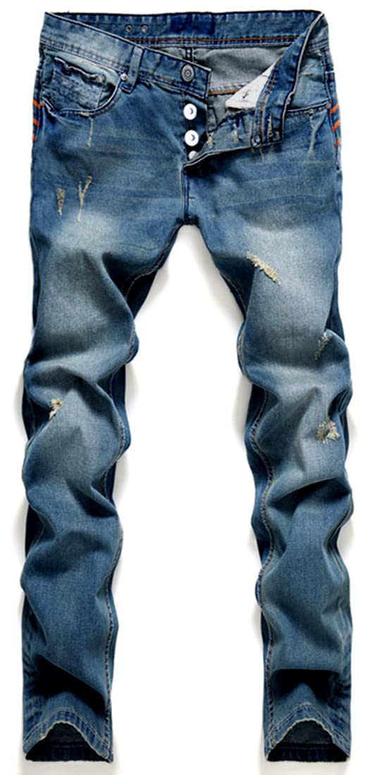 【送料無料】[Laquest] (ラクエスト) ダメージ ジーンズ ストレート スリム デニム (42) 色:ブルー、サイズ:42