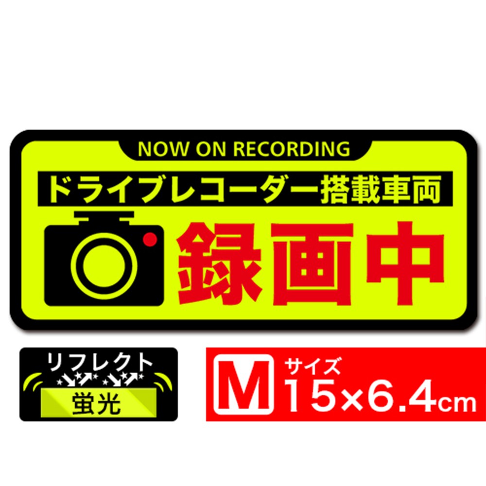 送料無料 後方録画中 イエロー蛍光M 黒フチ ステッカー シール 15x6.4cm Mサイズ ドライブレコーダー搭載車両 あおり運転対策M EXPROUD B0776VLNTT