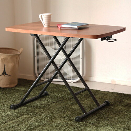 VOOR ヴォール リフトテーブル BR ブラウン色 昇降式テーブル 使う場面にあわせて高さを調節できる
