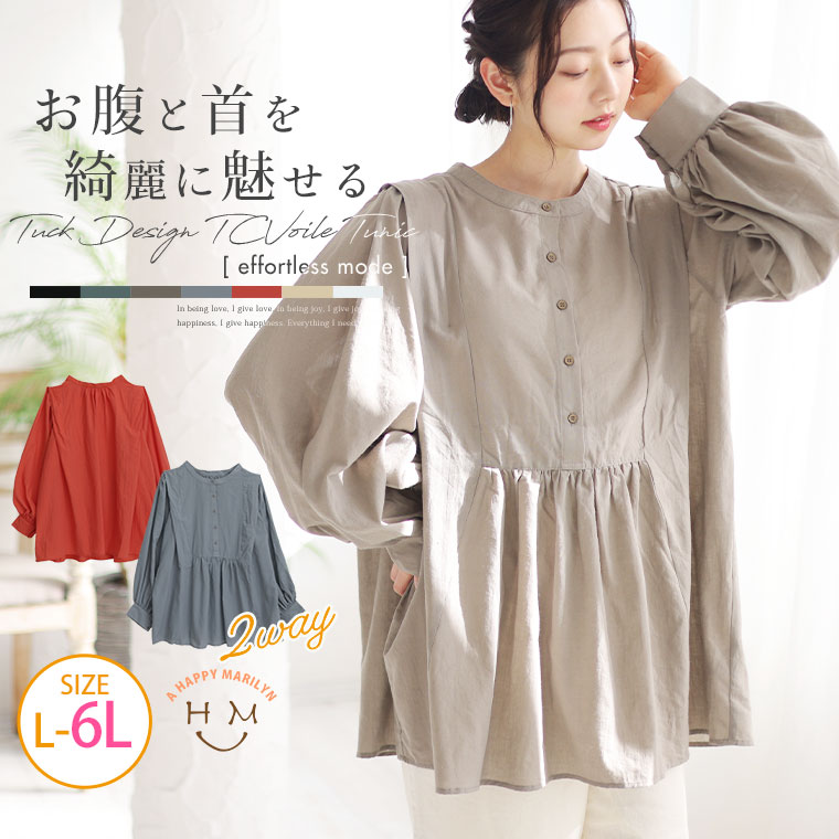 【期間限定クーポン配布】 大きいサイズレディース ブラウス | 【effortless mode】お腹と胸元にこだわった 2WAY仕様 洗練美人 ブザム タック ボリュームスリーブ ブラウス _ シャツ トップス LL 3L 4L 5L 6L 春 夏 プラスサイズ [trc-232111]
