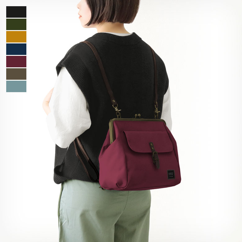 【在庫商品】がま口フラップ2WAYリュック【コーデュラ(R)】 リュック バックパック カバン かばん 鞄 2WAY ショルダー 斜め掛け 肩掛け レディース 日本製 京都 ガマグチ がまぐち