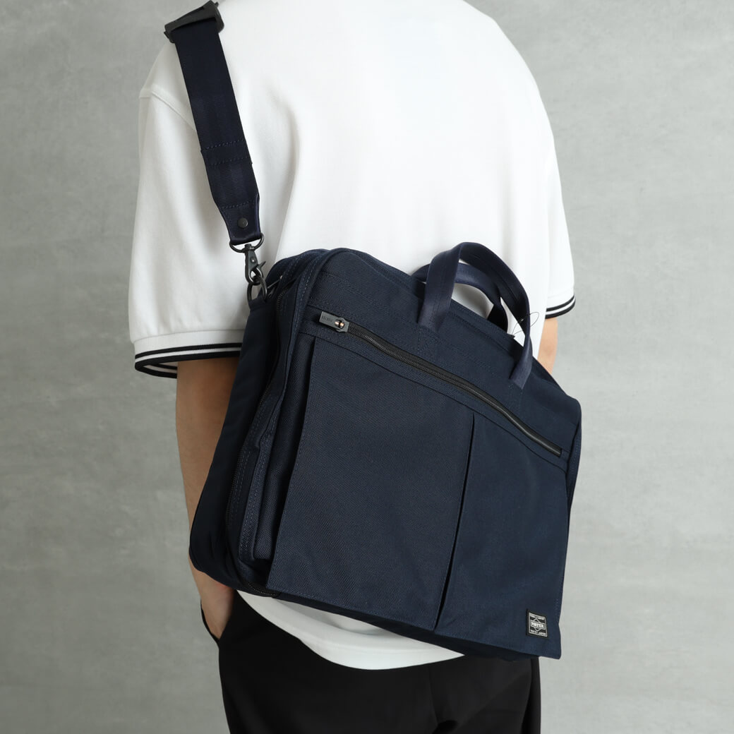 PORTER/ポーター TENSION 2WAY BRIEFCASE / テンション 2ウェイブリーフケース メンズ PORTER 小物 トート ショルダー バッグ 2way ビジネス 商品番号 627-17307 カラー展開 ■ネイビー(50) ■ブラック(10) 商品詳細 不変的なデザインと機能性の高さが魅力の「PORTER TENSION(テンション)」シリーズより、2ウェイブリーフケースの登場です。 TENSIONシリーズは、耐摩擦・耐引裂強度の高いコーデュラナイロンをメイン素材に採用したシリーズとなっております。 ファスナーにはYKKのセミオートマチックロックスライダーを採用しており、ファスナーが自然に開くのを防いでくれます。 ファスナーを開ける方向に引き手を倒すことでロックされ、引き手を起こしたり、ファスナーを閉める方向に倒すとロックが解除される機能的な仕組みとなっております。 ペン差しやポケットを多数配した前層と、高い収納力のあるメイン層に分かれており、背面にはスマートフォンやパスケースなどの収納に適した3つのオープンポケットも備えている機能性抜群なアイテムです。 素材 表:コーデュラナイロン(ウレタンコーティング) 裏:ナイロンオックス(PVCコーティング) 生産国 日本 SPEC サイズ 高さ(H) 横(W) マチ幅(D) (ONE) 31.5cm40cm11cm 在庫について ※こちらの商品は店頭でも販売させて頂いております。常に在庫状況を確認させて頂くようにしておりますが、ご注文を頂きました場合でも、品切れとなってしまう場合がございます。 恐れ入りますが、ご注文内容確認メールの配信後再度在庫のご確認メールをお送りさせて頂いておりますので、ご了承のほどよろしくお願い致します。 注意点 採寸はスタッフの手作業により行っております。若干の誤差がある場合がございますので、予めご了承ください。 商品のカラーは、モニターの性質上、実際の色と異なって見える場合があります。予めご了承ください。 過度な摩擦は、部分的に色落ちや色移りの原因となる場合がございます。 直射日光、蛍光灯の長期照射は色褪せの原因となる場合がございます。