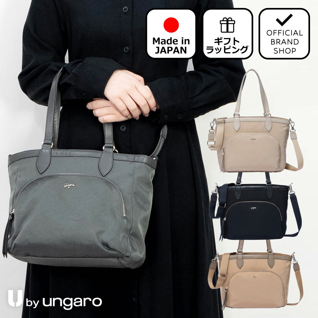 【正規販売店】U by ungaro アリス 2WAYトート[ユーバイ ウンガロ] トートバッグ ブランド ハンドバッグ ショルダー 斜めがけ 肩掛け 自立 ファスナー ナイロン 通勤 通学 お仕事 旅行 大人 無地 カジュアル シンプル おしゃれ 日本製 レディース バッグマニア
