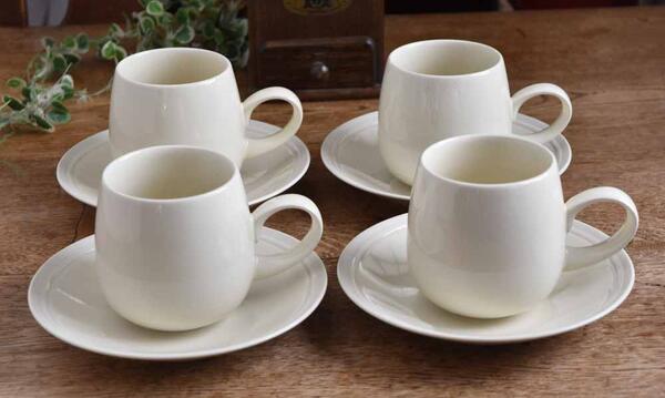 4客セット■リンドスタイメスト■ CREAM WHITE クリーム ホワイト コーヒーカップ&ソーサー