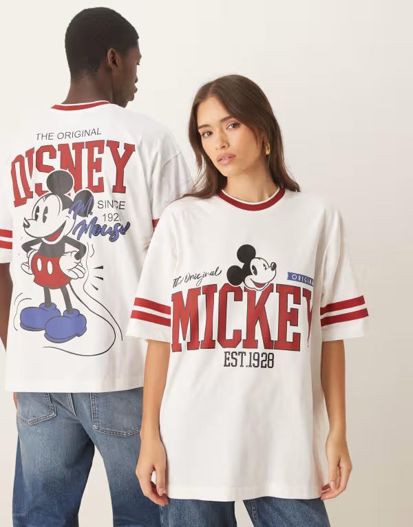 【送料無料】 エイソス レディース Tシャツ トップス ASOS DESIGN Disney Unisex oversized baseball t-shirt with Mickey Mouse prints in white WHITE