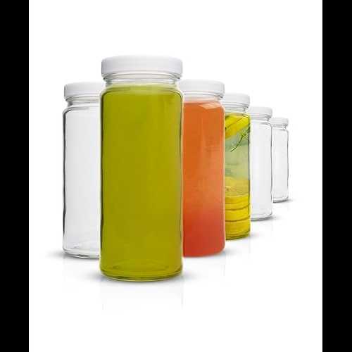 All About Juicing Clear Glass Water Bottles Set - 6 Pack Wide Mouth with Lids for Juice, Smoothies, Beverage Storage - 16 oz, Durable, Reusable, Dishwasher Safe, Leak Proof (White Caps)