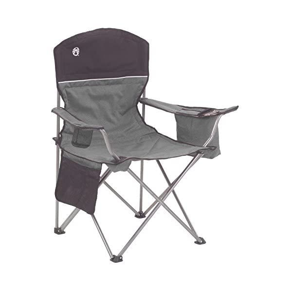 コールマン キャンピングチェア グレー ブラック ビルトイン 4缶クーラーポーチ付き アウトドアチェア キャンプチェア 折り畳み椅子 簡単 頑丈 耐荷重約147kg Coleman Camping Chair with Built-in 4 Can Cooler