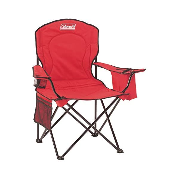 コールマン キャンピングチェア レッド ビルトイン 4缶クーラーポーチ付き アウトドアチェア キャンプチェア 折り畳み椅子 簡単 頑丈 耐荷重約147kg Coleman Camping Chair with Built-in 4 Can Cooler