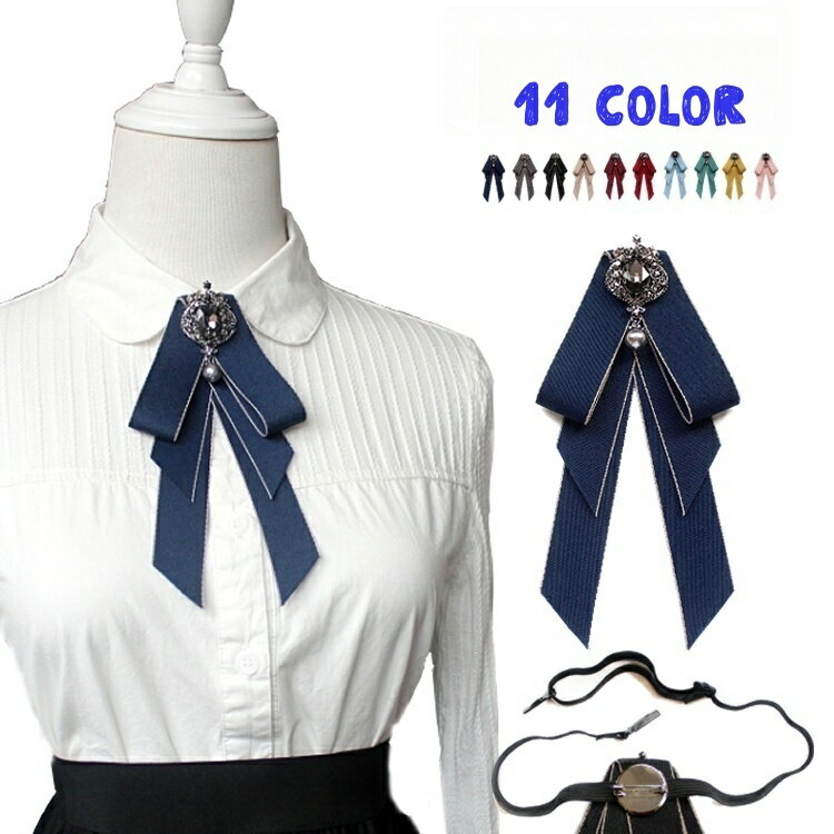 送料無料 リボンタイ ネクタイ ボウタイ リボン レディース 女性 婦人 制服 英国風 蝶ネクタイ ユニフォーム ブローチ 安全ピン ストラップ おしゃれ かわいい コスプレ