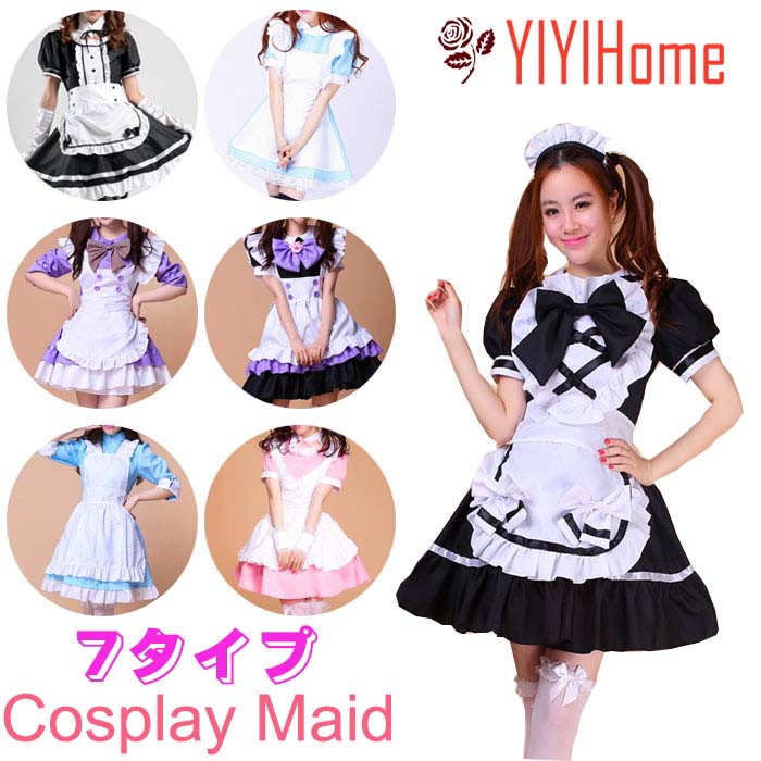 ハロウィン コスプレ 半袖 定番 衣装 女性 セクシー メイド服 コスプレ ハロウィン Halloween 黒 ピンク レッド ワイン グリーン パープル ワンピース