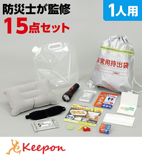 防災士が監修した防災セット! 枕入りで一泊可能なセットです。 難燃性のナップサックタイプなので、万一の火事の際にも荷物を守ります。 セット内容 非常用持出袋×1、非常用アルミシート×1、ホイッスル(ひも付)×1、携帯簡易トイレ×1、ばんそうこうセット(5枚、綿棒10本)×1、非常用食器折り紙×1、不織布マスク×1、非常用給水袋5L×1、LED懐中電灯×1、単1乾電池(2本組)×1、持ち運び簡単エアー枕×1、立体スポンジアイマスク×1、耳栓×1組 防災用ウェットティッシュ×1 リュックサイズ:335×450mm