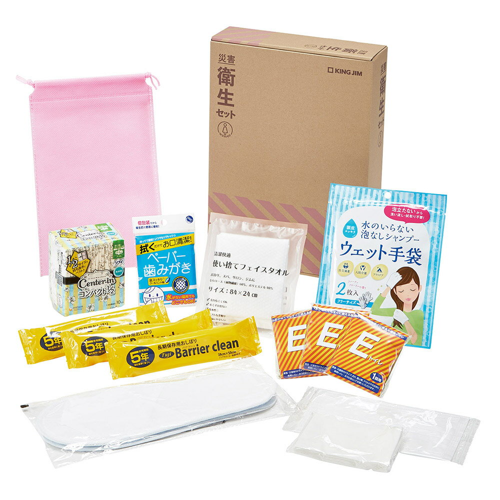 【メール便不可】HGS-300キングジム 災害衛生セット(女性用)災害対策 防災用品 防災 給水 断水 災害 地震 備蓄 ナプキン 非常用 コンパクト トイレ 簡易 お風呂 タオル 綺麗 管理 家 会社 シンプル 津波 歯ブラシ 家族【お取り寄せ】