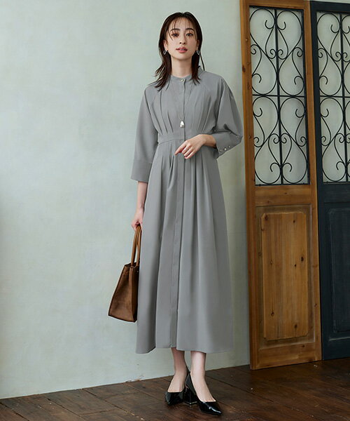 Ashgreen Black Darkgray Detail 商品詳細 ウエストタック・バンドカラーロングワンピース(CU1208) シンプルフェミニンな美シルエットワンピース ウエストシェイプでスタイルアップ♪ 知的な雰囲気漂うデザインは、1枚で2WAY楽しめるワンピースで着回し自在 ウエストは高めの位置で、タック切替えを入れ着るだけでスタイルアップ。 すっきりとしたバンドカラーに、ゴールドボタンがアクセント。 ジャケットを合わせて、きちんと感をキープ。 オフィスシーンでも着用いただける、綺麗めな生地感も魅力。 【ディティール】 ・シルエット ウエストがシェイプされた美しいフィット&フレアのシルエットが、女性らしさを演出。 すっきりとしたバンドカラーに、ゴールドボタンがきらりと光りアクセントに。 ・ウエスト 前後共に、高めの位置にタック切替えを入れることで、着るだけでスタイルアップ効果を発揮します。 ・袖 タック入りのボリュームスリーブがふんわり二の腕をカバー。 カフスには3つのゴールドボタンが並びます。 ・ボタン 第1ボタンより下は、比翼仕立てになっているので、すっきりとした印象に。 ・ポケット 両サイドに目立ちにくいシームポケット付きです。 ・生地 タックが綺麗にでるので、メリハリのある女性らしいシルエットを作るのに適した素材。 ストレッチも利いているので動きやすく、着心地良く着用して頂けます。 ・WASHABLE 手洗い可能なウォッシャブル仕様 ご家庭で洗えるウォッシャブル生地を使用しているので、クリーニングに出す手間も省け、いつでも洗い立ての着心地で清潔に保てます。洗濯機には入れず、優しく手洗いして下さい。 洗剤はおしゃれ着用の中性洗剤がおすすめです。 【カラー】 ・ダークグレー ・アッシュグリーン ◆COORDINATE ITEMはこちら ジャケット ブラック ・ブラック ◆COORDINATE ITEMはこちら パンツ グレージュ ●おすすめシーン オフィスカジュアルなど通勤ビジネスシーン、誕生日会、食事会、同窓会などのお呼ばれや、女子会、デート、婚活、街コンなど幅広いシーンに対応でき、20代・30代・40代・50代まで母親・ママさんにもご活用頂ける上品できれいめなワンピースです。 サイズ *着丈 バスト ウエスト 裄丈 S7号 122 90 74 59 M9号 123 94 78 60 L11号 124 98 82 61 LL13号 102 86 62 3L15号 110 94 63 *SNP=ショルダーネックポイント ■サイズガイド■ 素 材 ポリエステル 95% ポリウレタン 5% 商品仕様 ◆伸縮性:あり◆裏地:なし◆開き具:前開き釦 14個 ◆カラー:ダークグレー/アッシュグリーン/ブラック 備 考 ※商品を平置きにし、メジャーにて手作業による採寸をしております。若干誤差がございます。サイズ等で不明な点はお問い合わせください。 ◆レビューは商品到着後でお願いします。 ■ご利用ガイド■