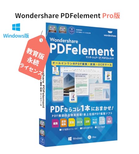 Wondershare PDFelement 12 Pro(教育版) PDFのことなら、すべてお任せ PDF編集 OCR PDF変換 PDF作成 PDFをエクセルに変換 pdf word pdf excel 変換 PDFをワードに変換 Windows10、11対応 永続ライセンス|ワンダーシェアー