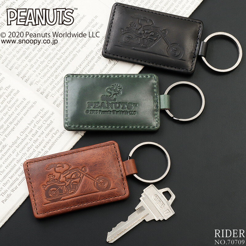 キーホルダー スヌーピー おしゃれ かわいい メンズ 小物 キーリング 本革 牛革 レザー キャラクター PEANUTS ピーナッツ SNOOPY ウッドストック Woodstock バイク イラスト 型押し NO.70709 mlb メール便 送料無料 NPU