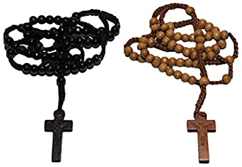 【中古】【輸入品・未使用】2pc Tan & Black Coloured Wooden Beads Rosary Necklaces with Jesus Imprint Cross
