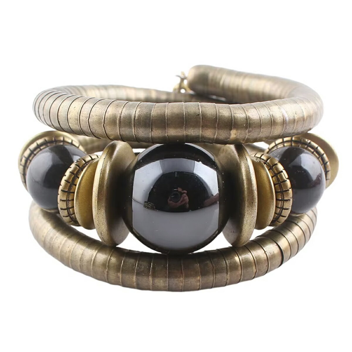 ブラックボールラップバングル 1個販売 アンティークゴールド 黒色 石 調整 インディアンジュエリー ボヘミアン 腕輪 アームレット メンズ レディース 二の腕 手首 ブレスレット ペア 巻く ラップブレスレット 夏 海 伸縮 腕 フリーサイズ 男 女 彼氏 彼女 人気 手作り